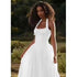 Vintage Scalloped Bustier Bow Tie Front Drop Waist Midi Halter Sundress. Designed for the fashion-forward woman, this vintage scalloped bustier sundress features a playful bow tie front and a flattering drop waist midi design. Its halter neckline will accentuate your collarbone and shoulders, making a statement at any event. With its timeless aesthetic, this sundress is versatile enough to be dressed up or down, perfect for any occasion.