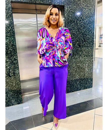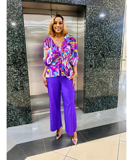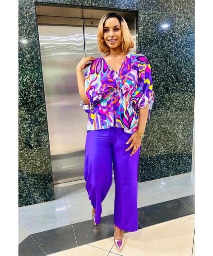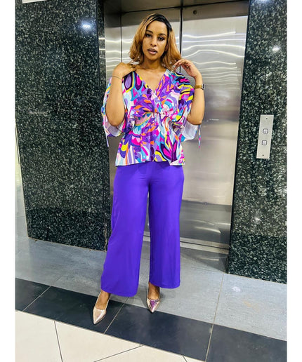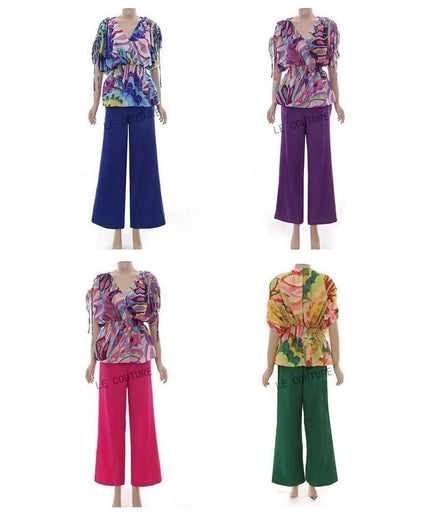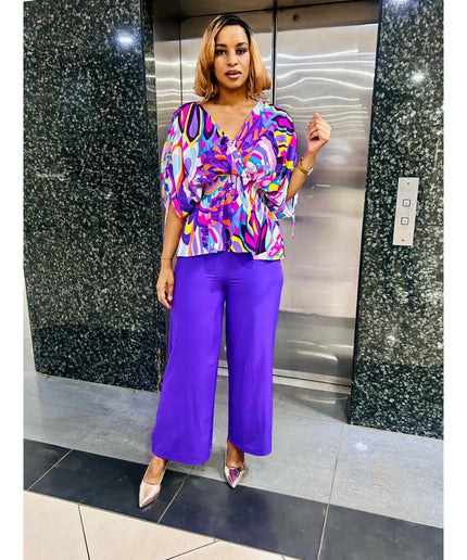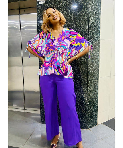 Multicolor Printed Sleeve Knot Side Top & Pants.