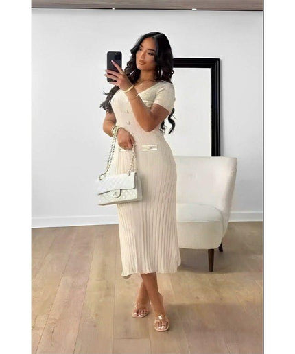 Expertly designed with high-quality materials, our Women's Knit Short Sleeve V-Neck Casual Maxi Dresses offer both comfort and style. Perfect for any casual occasion, these dresses are a versatile addition to your wardrobe that will have you feeling confident and beautiful. Made with soft knit fabric, you'll never want to take off this luxurious dress.