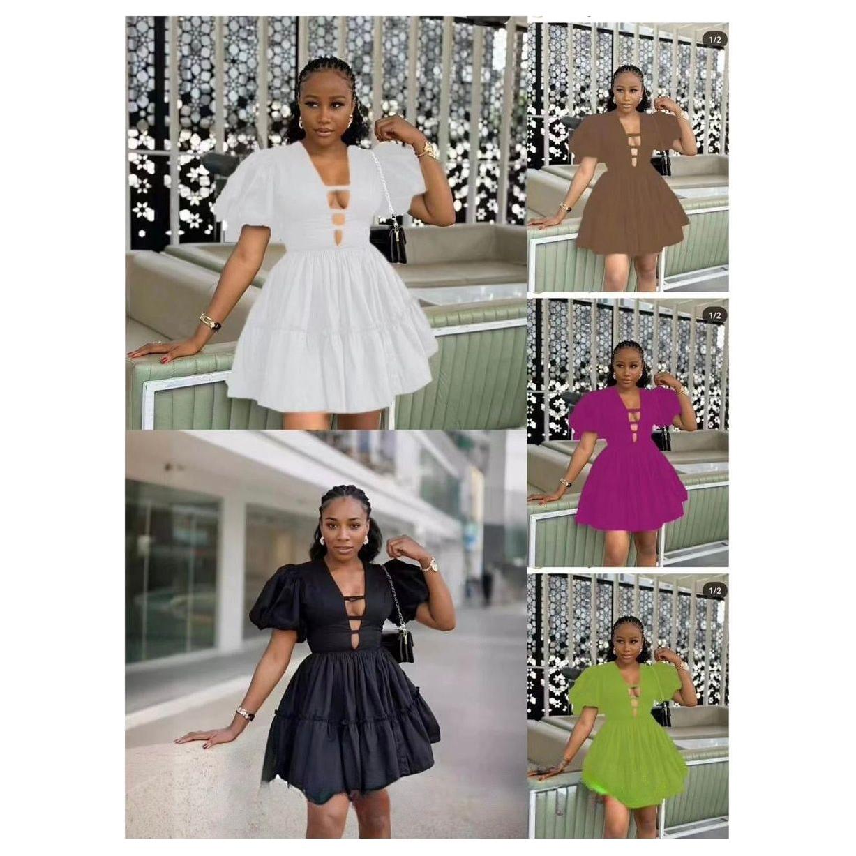 Women's Solid Color Minimalist Casual Lantern Sleeve Short Dress. Upgrade your wardrobe with this solid color lantern sleeve dress. Perfect for casual and minimalist styles, this dress combines comfort and elegance for the modern woman.
