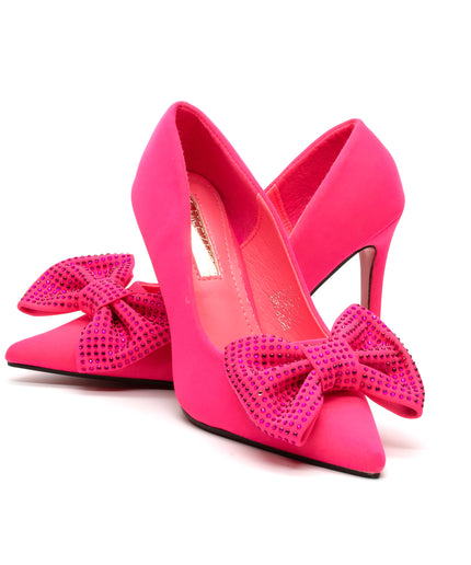 Bowknot Rhinestone Heels. The sparkling rhinestone details give your outfit an instant glamorous upgrade. Perfect for special occasions, these shoes are sure to be a head-turner.