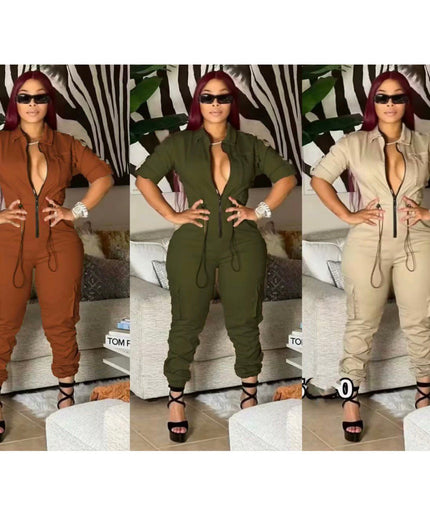 This zipper cargo jumpsuit is designed with both comfort and durability in mind, making it perfect for everyday wear. Its reinforced fabric and metal detailing provide superior strength and a stylish look. From its sleek design to its strong construction, this jumpsuit is built to protect you from the elements while keeping you looking your best.Â